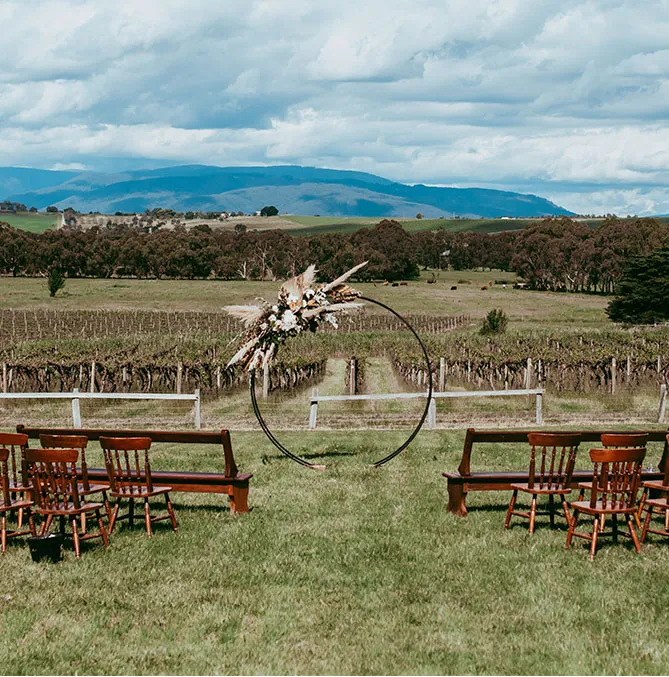 Exchange vows overlooking rows of vines and the dramatic backdrop of the Yarra Ranges. Soft breezes, golden hour light, and uninterrupted views make this an unforgettable setting.